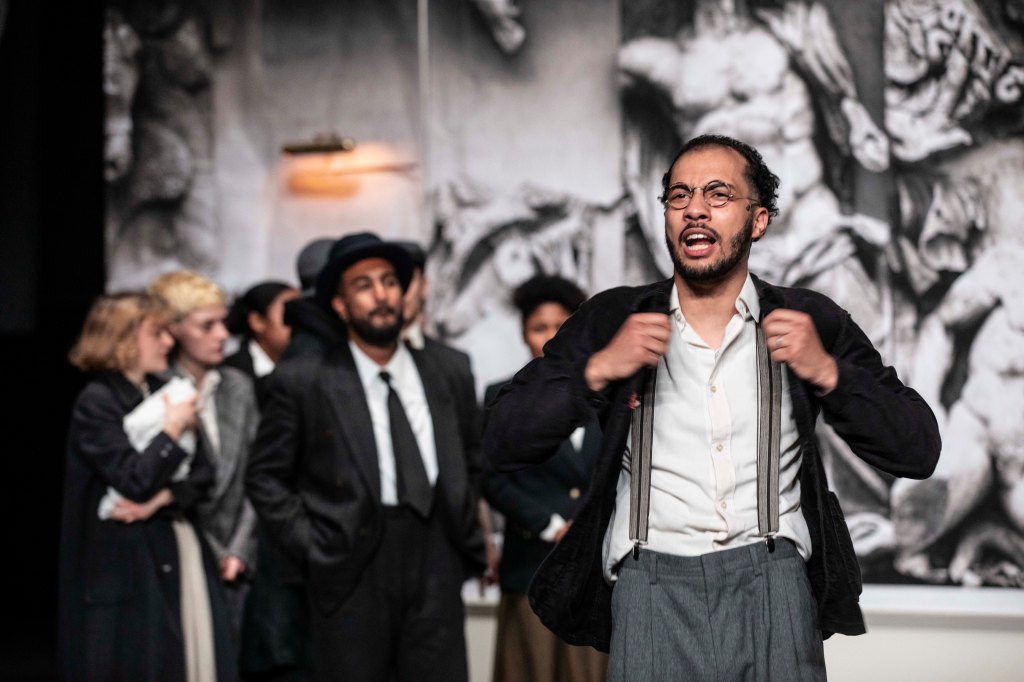 Dès le début de la pièce, Sylvain Creuzevault et Peter Weiss s’attardent sur la frise du Grand Autel de Pergame, et nous rappellent que nous ne voyons rien.