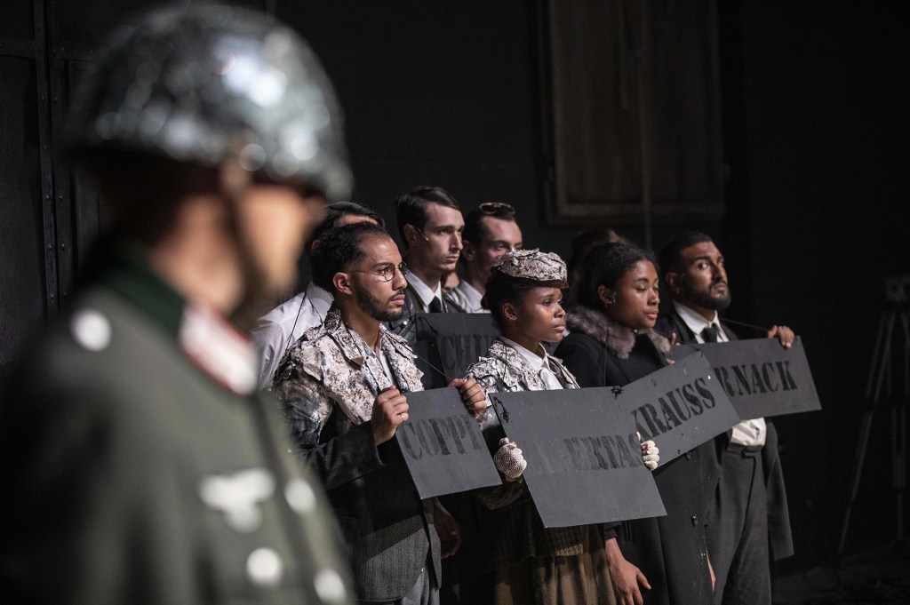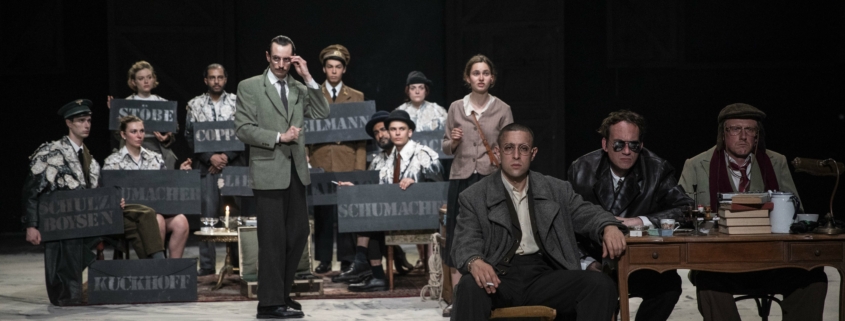 Avec : Jonathan Bénéteau de Laprairie (Arvid Harnack), Juliette Bialek (Marlène Dietrich, Hélène Weigel, Ilse Stöbe), Yanis Bouferrache (Horst Heilmann), Gabriel Dahmani (le narrateur), Boutaïna El Fekkak*(la mère de Hans Coppi, Ruth Berlau), Hameza El Omari (Hans Coppi, Münzer), Jade Emmanuel (Marcauer, Joséphine Becker, Libertas Schulze-Boyzen), Felipe Fonseca Nobre (Jacques Ayschmann, Kurt Schumacher), Vladislav Galard* (Peter Weiss, Willi Münzenberg, Richard Stahlmann), Arthur Igual* (le père du narrateur, José Díaz Ramos, Bertolt Brecht), Charlotte Issaly (Otto Katz, Karin Boye, Margarete Steffin, Mildred Harnack), Frédéric Noaille* (Max Hodann, Jakob Rosner, Wilhelm Vauck), Vincent Pacaud (un.e associé.e de Katz, Herbert Wehner, Adam Kuckhoff), Naïsha Randrianasolo (la mère du narrateur, Edith Piaf, Anna Krauss), Lucie Rouxel (Charlotte Bischoff), Thomas Stachorsky (Nordahl Grieg, Maurice Chevalier, Haro Schulze-Boyzen, Harald Poelchau), Manon Xardel (un.e associé.e de Katz, Lise Lindbæk, Rosalinde von Ossietzky, Elisabeth Schumacher)