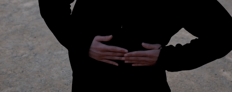 Si la position constante des mains de Shiraz cachait le visage des interprètes, le mouvement constant des mains de Katherina Jitlatda Horup Solvang, pour Of the heart – An etude, dévoile le visage pour se poser sur le cœur, laissant aux avant-bras le soin de suivre la ligne du méridien qui le traverse. Le visage de Katherina Jitlatda Horup Solvang se fait visible, dans ce qu’il a de plus nu.