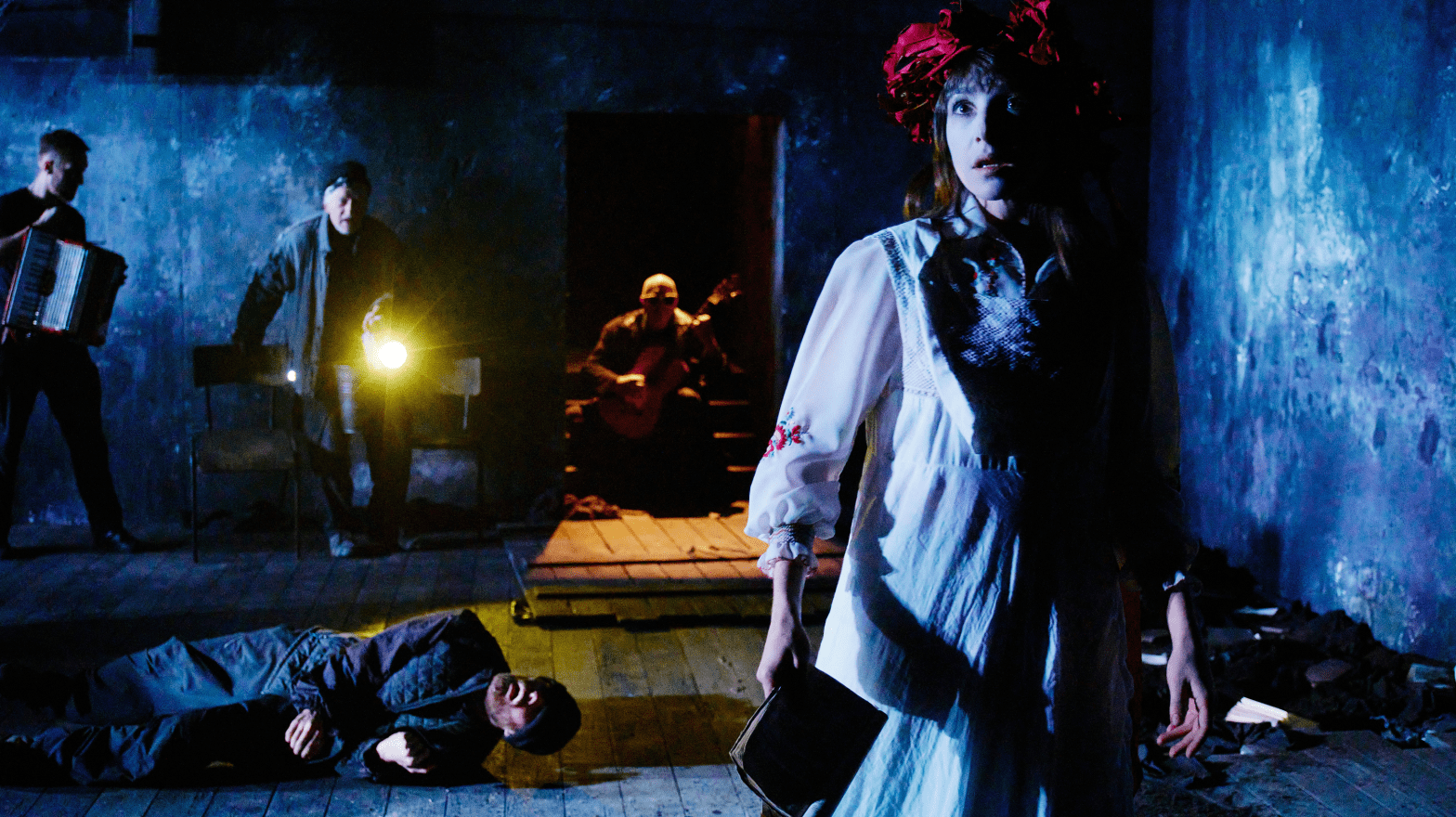 De même, dans la mise en scène de Kirill Serebrennikov, les visages restent éteints pendant la majeure partie de la pièce, celui du soldat russe n’apparaîtra que dans le monologue final. Ce visage, que Lévinas décrit comme une misère, une vulnérabilité et un dénuement qui exige réponse : “Le visage s’impose à moi sans que je puisse cesser d’être responsable de sa misère.” Ce visage, qui me dit que je dois répondre de tous les autres. Ce visage, qui est l’horizon de la morale. Ce visage, qu’il suffit de ne pas regarder pour qu’il soit aisé d’appuyer sur la gâchette…